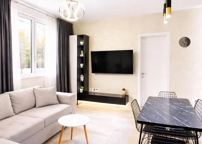 Den 35 m² stora lägenheten ligger i närheten av Historiska nationalmuseet. Gästerna kommer också att hitta Dajti Ekspres Cable Car, ungefär 4 km bort. Ungefär 19 minuter till fots från lägenheten Luxurious Central Stay - Self Check-In hittar du Kulturpalatset.